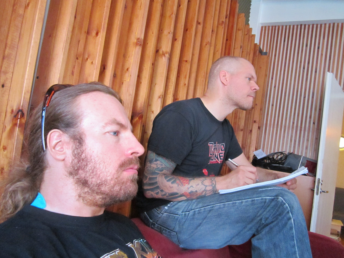 It was great to see my old friend Samuel Hoisko drop by today at Drumforest Studios in Viitasaari, Finland, where we were recording with engineer Nikke Niemispelto. Samuel was the songwriter and guitarist from my very first real band here in Finland, power metal group Hallowed, back in 1999.