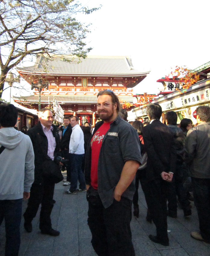 My special fan Mayumi also took me to see the world-famous Senso-Ji Asakusa temple in Tokyo. The place is a major tourist attraction, and I also found a very cool shop next to the temple called Caricature Japan, where artist Itsumi Nakabachi drew up a cartoon portrait of Yours Truly as a special memoir.